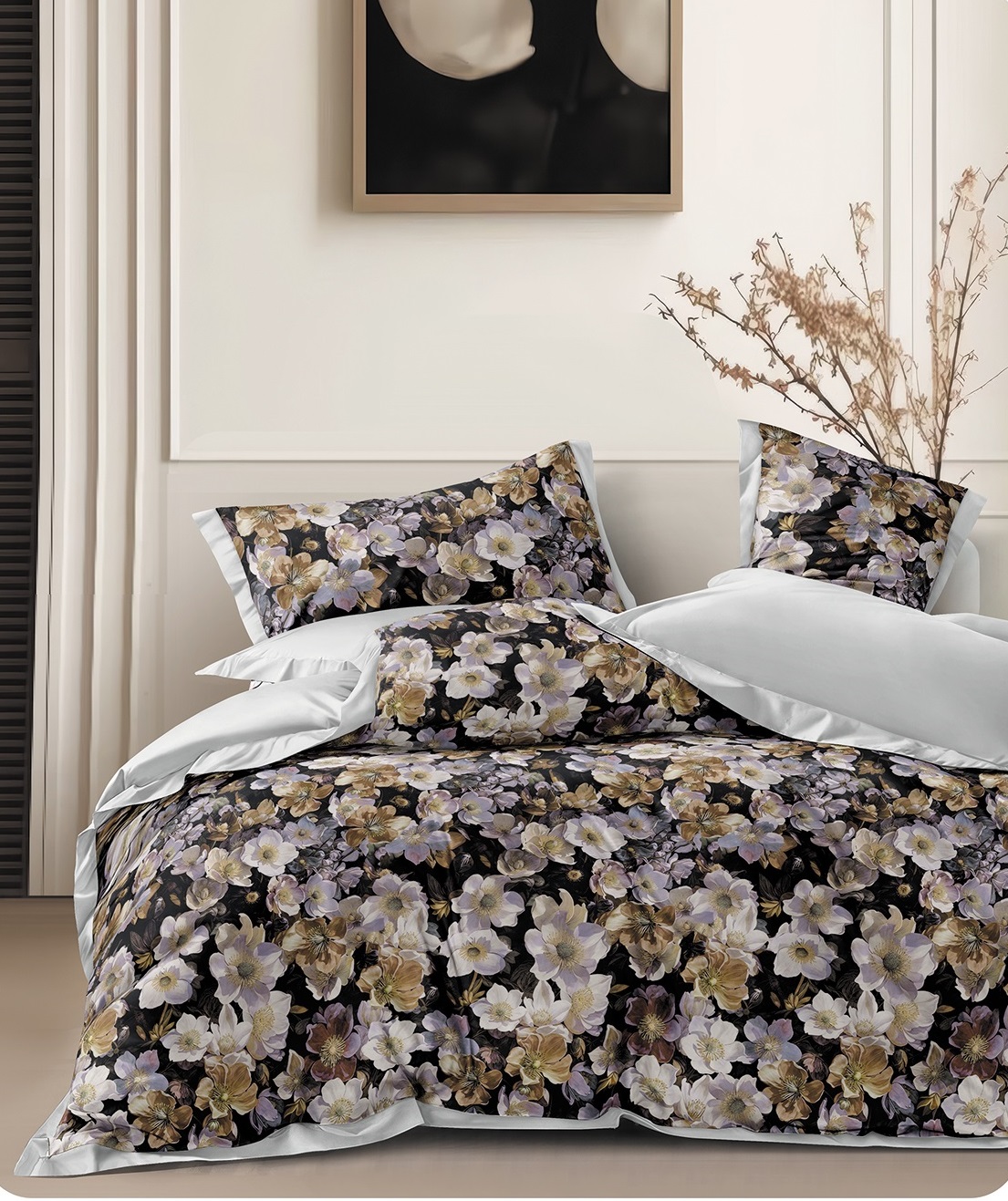 Благодаря сатиновому переплетению ткань имеет шелковистую поверхность и деликатный благородный блеск, а цифровая печать по ткани позволяет создавать яркие, детализированные и реалистичные рисунки с плавными оттенками и высокой стойкостью цвета. Принты не тускнеют и сохраняют насыщенность даже после многочисленных стирок.