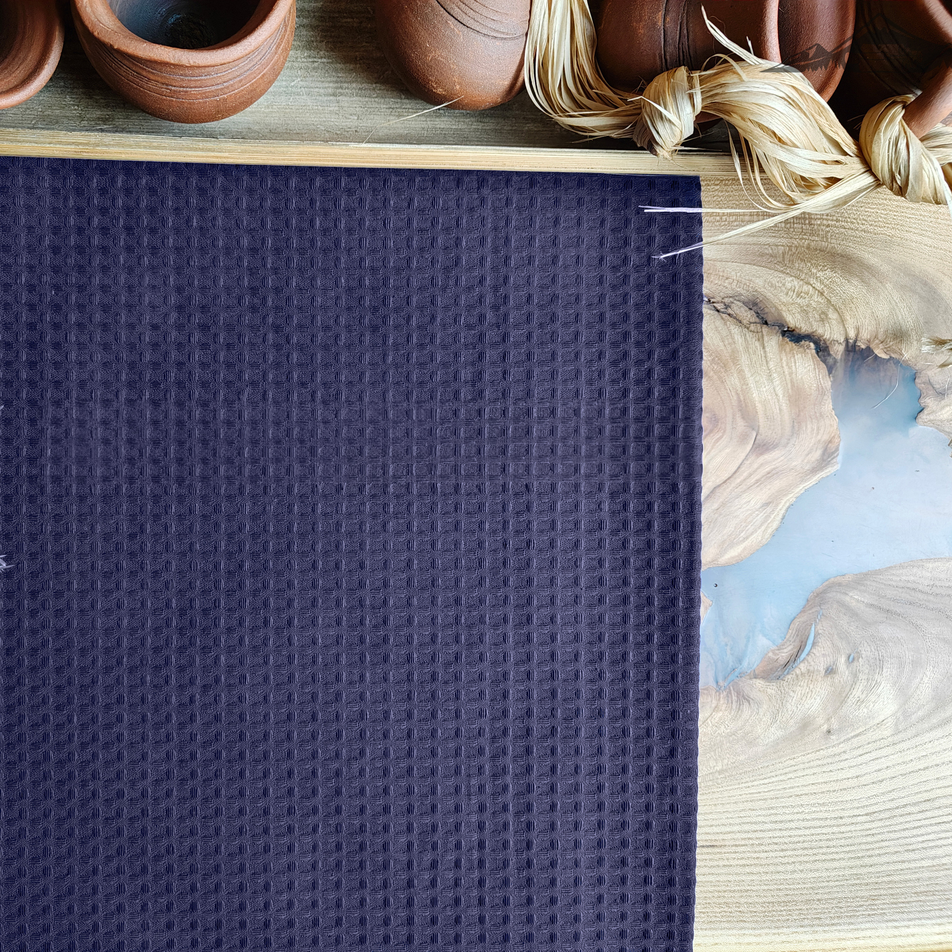 Вафельное полотно гладкокрашеное цв.Синий | ш.150 см | 240 г/м² | хлопок-100%
