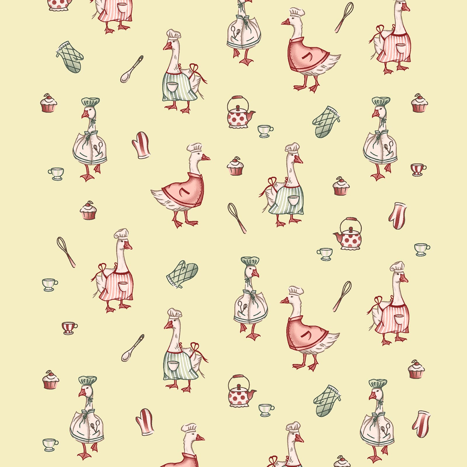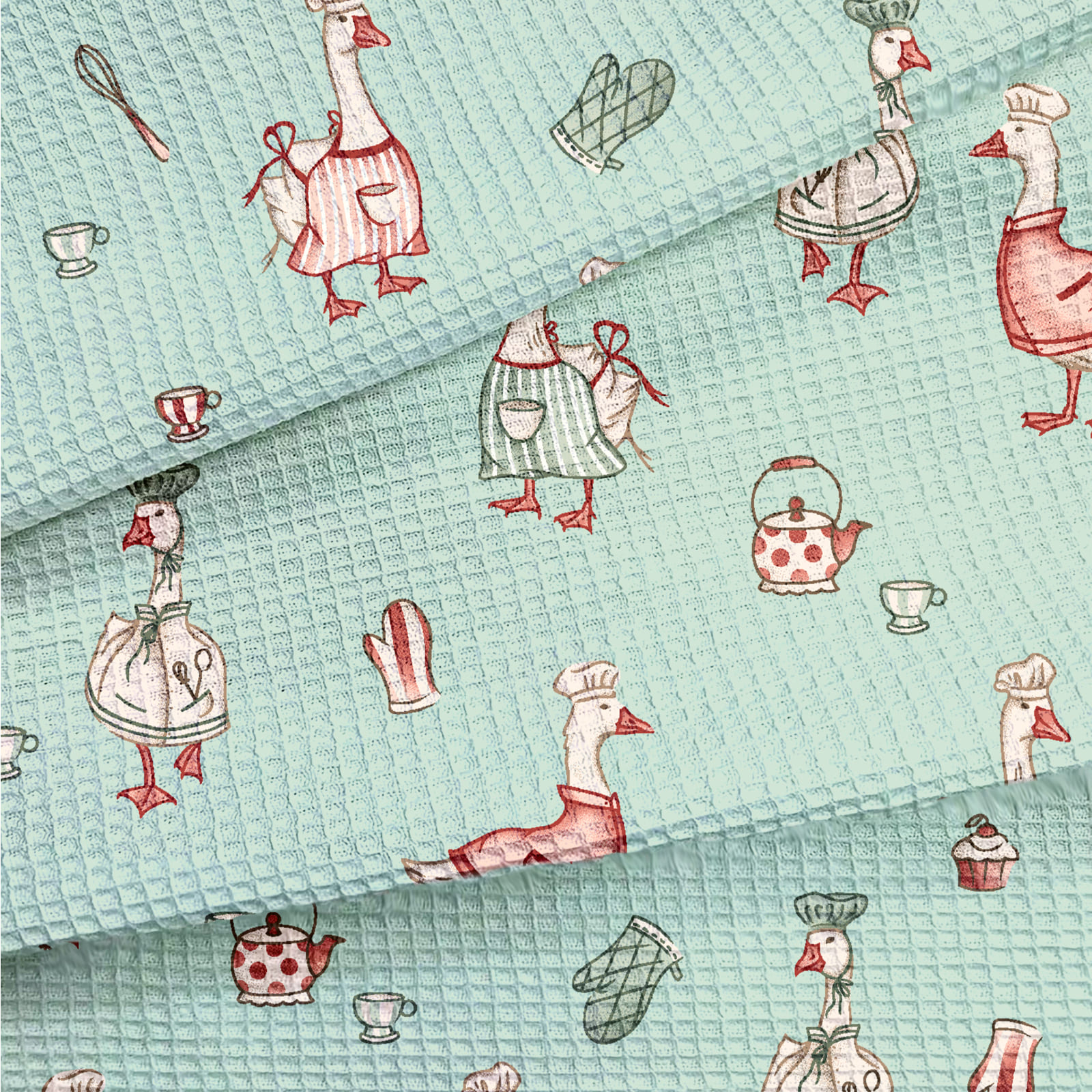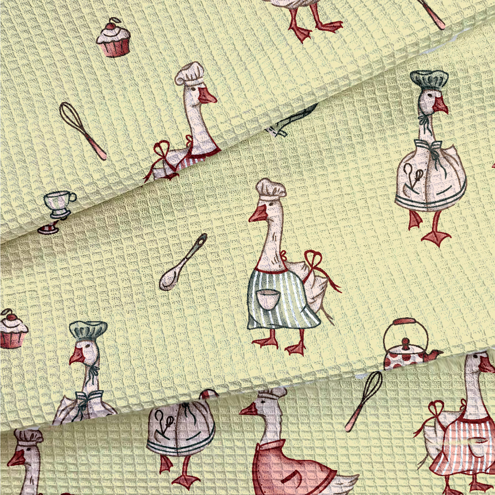 Вафельное полотно "Гуси" | ш.50 см | 170 г/м² | хлопок-100%