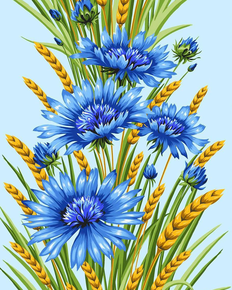 Вафельное полотно "Васильки" | ш.50 см | 170 г/м² | хлопок-100%
